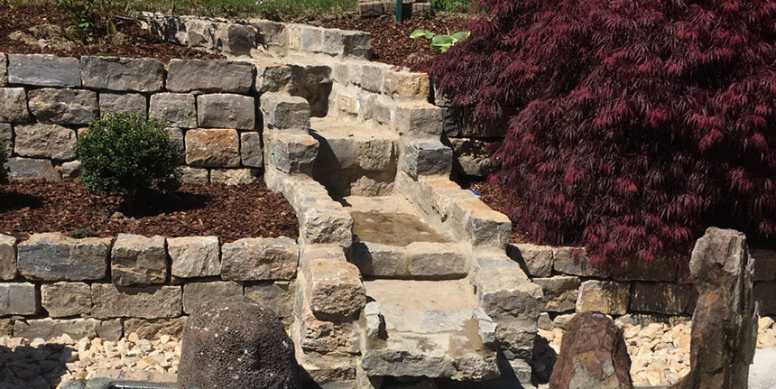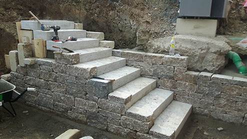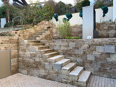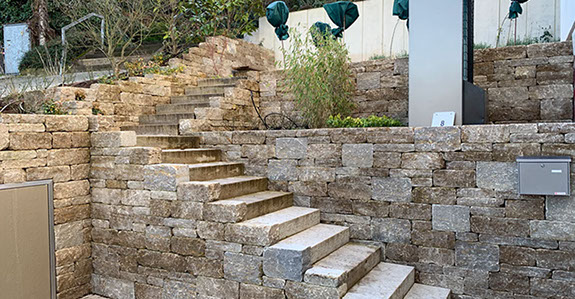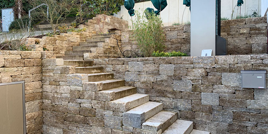 Die Treppenanlage wurde aus Muschelkalkblockstufen mit geschliffener Oberfläche erstellt.